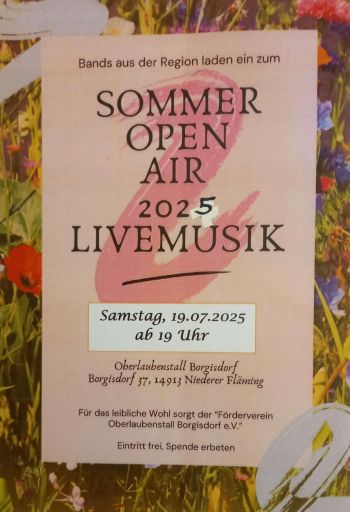 🎶 Am Samstag, den 19. Juli 2025, verwandelt sich der Garten hinter dem Oberlaubenstall in Borgisdorf wieder in eine stimmungsvolle Bühne für das beliebte Sommer-OpenAir. Ab 19 Uhr erwartet euch ein abwechslungsreiches Live-Musikprogramm mit Bands aus dem Kirchenkreis – und als besonderes Schmankerl ist die Band "The Tone" erneut als Special Guest mit dabei.